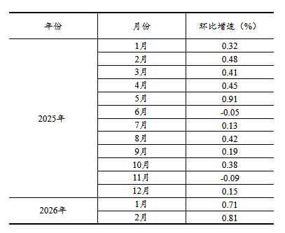 根据季节调整模型自动修正的结果,对2025年1月份至12月份社会消费品零售总额环比增速进行修订。修订结果及2026年1、2月份环比数据如下: